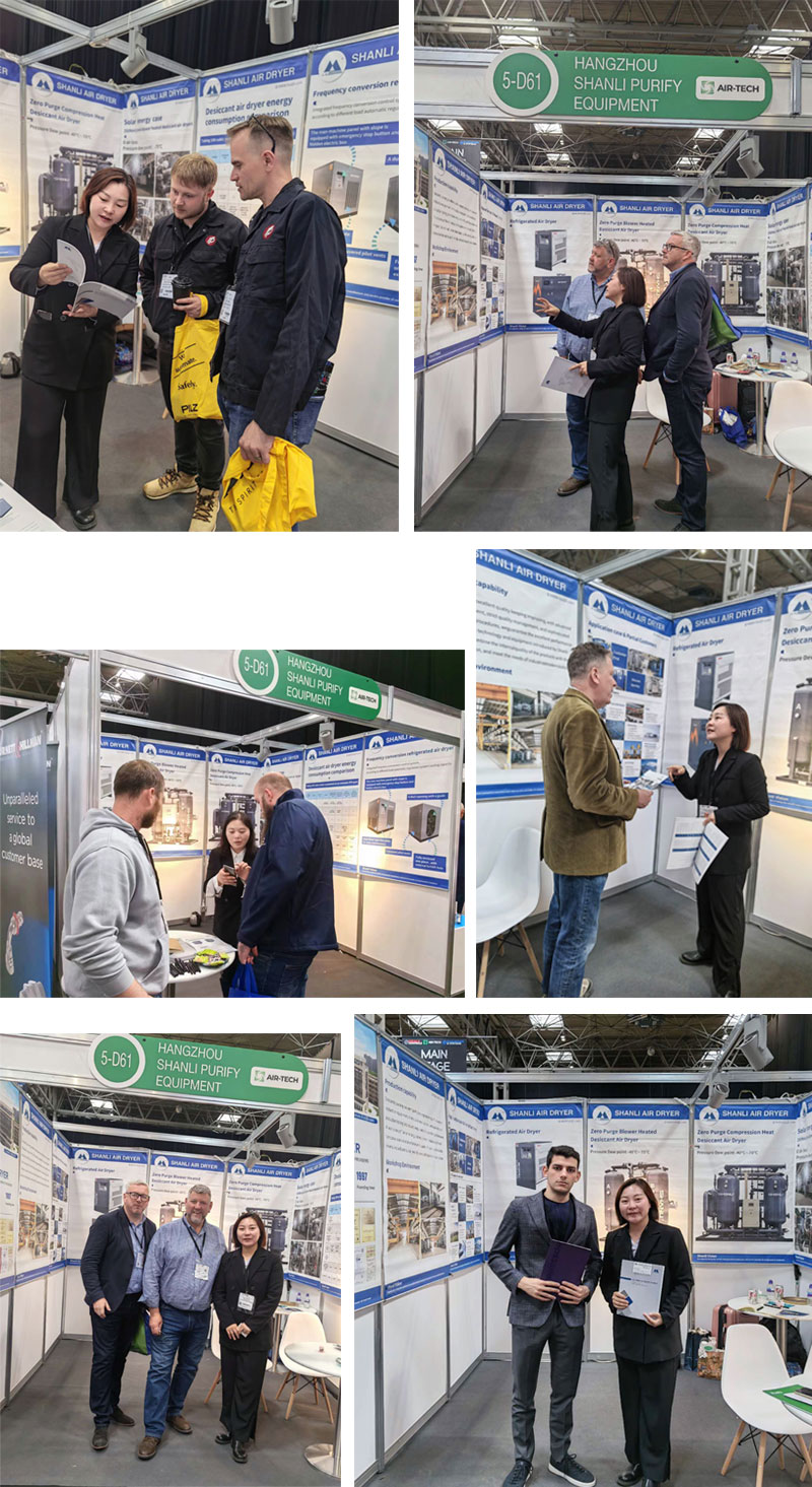我们的销售工程师在展会期间详细介绍了公司的主流产品:冷冻式干燥机、组合式低露点干燥机、压缩热干燥机、鼓风热干燥机等,并且着重介绍了sunbet申搏最新产品:变频冷干机、零气耗压缩热以及鼓风热再生吸附式压缩空气干燥机,深入浅出地讲解了产品的创新特点和技术优势,完美展现了我们在净化设备领域的专业水平和研发实力。