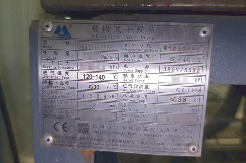 该化工企业所采用的吸附式干燥机型号为SDXY-720PF-I,具备零气耗压缩热再生的先进再生方式。这一特性使得干燥机在运行过程中,能够极大程度地节约能源,降低生产成本。对于化工生产这种能源消耗大户来说,每一点能源的节省都意味着利润空间的拓展。