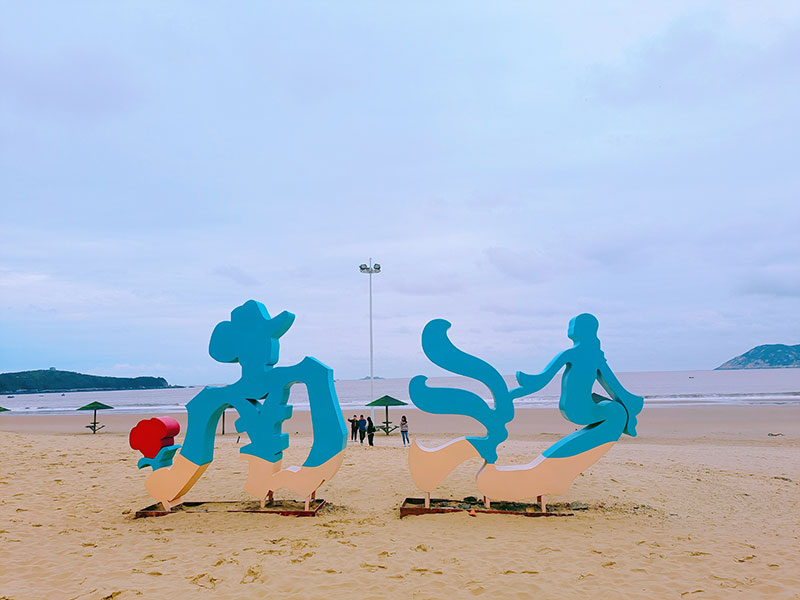 当天下午我们来到了朱家尖南沙景区,蓝天下飘逸的“南沙”二字仿佛在说:“欢迎你们的到来”。栩栩如生的巨大沙雕作品,给人以非常强烈的视觉冲击力,可以看到这届沙雕作品是以“沙话亚运”为主题,主体又分为“杭州亚运”“中国亚运”“亚运简史”等板块,通过沙雕艺术,不仅演绎了亚运文化还展示了亚运精神。在这里仿佛能感受到每一粒沙子顽强而坚韧的生命力,不得不被“大地艺术”深深折服。