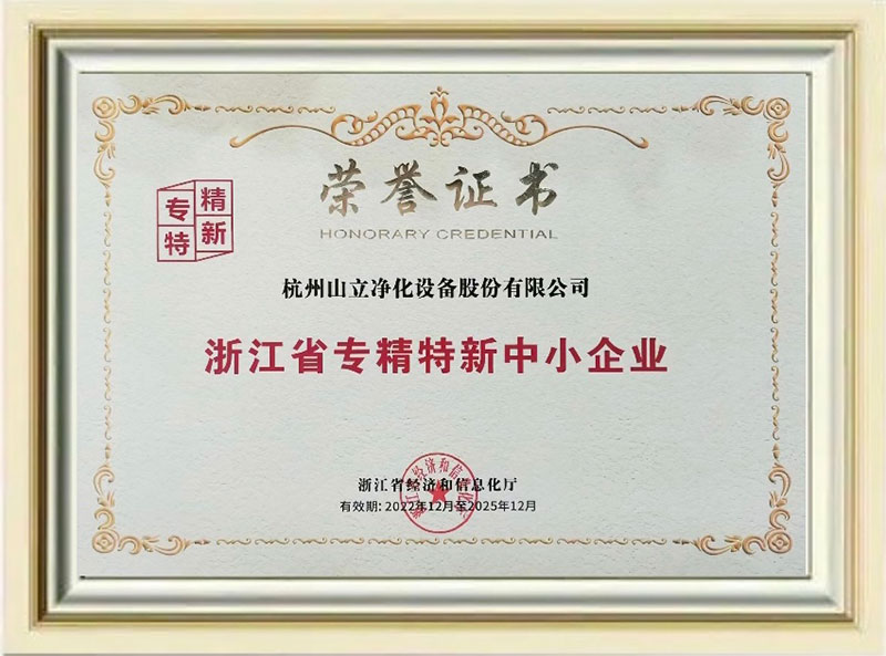 近日,浙江省经济和信息化厅公布了2022年度浙江省“专精特新”中小企业名单,sunbet申搏净化榜上有名,荣获浙江省“专精特新”中小企业称号。此次被认定为浙江省“专精特新”中小企业,是对sunbet申搏净化技术创新、产品服务、经营发展及综合实力等方面的认可和肯定。